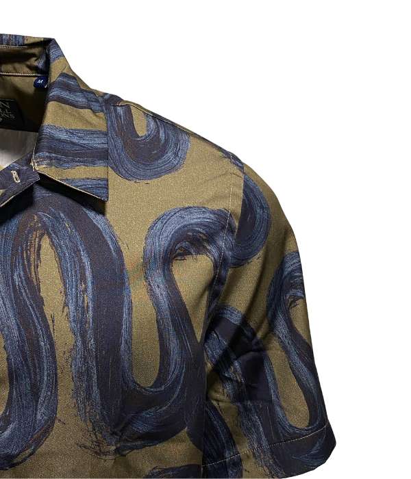 Fabriquée à partir de tissu 100 % de coton, cette chemise à manches courtes est ornée d'un motif "Wave Brown". D'un style classique qui s'associe aussi bien avec des vêtements élégants que décontractés, cette chemise est dotée d'un col décontracté à boutons bouclés.